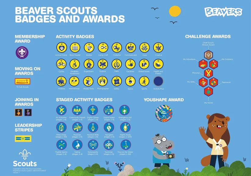 Beavers actively take part in earning lots of badges, either independently or at section meetings. There are plenty to choose from and we encourage our members to achieve their top Chief Scout Bronze Award by the time they swim up to Cubs.